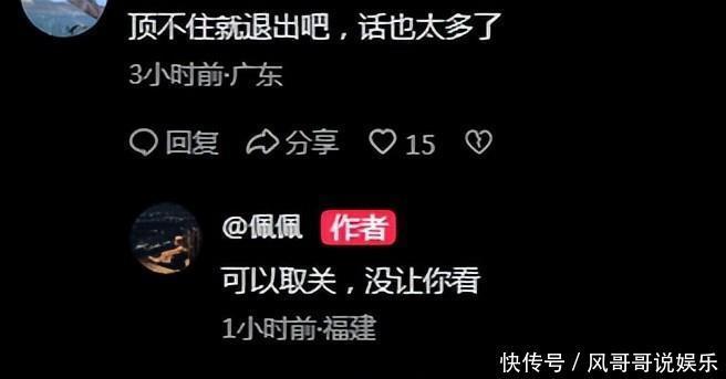 而佩佩也是不惧怕粉丝评论,直接霸气的回应了网友四个字,说他们是自作聪明。之后也有网友为佩佩打抱不平,发了大哈群管理的一些聊天记录。总之各种各样的说法都有,感觉现在的局面又变得乱糟糟的了。